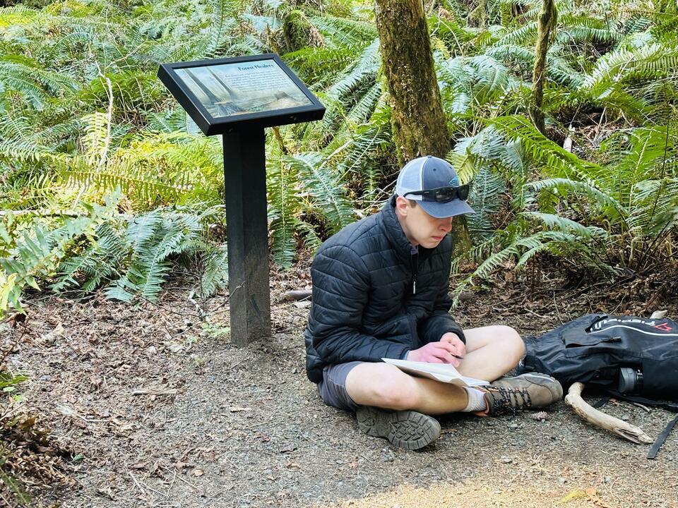 We discovered early on that Olympic National Park was inhabited by a variety of life I’d never seen before, including an abundance of moss and some very special mushrooms. We stumbled upon the Artist’s Conk while exploring the forest, and our guides showed us that if we took a stick and “wrote” on the mushrooms, the writing would stay there, and it wouldn’t hurt the mushroom at all! The artists in the group went to work on the mushrooms, and that's when our NatureBridge guides let us loose to explore on our own. Funny thing about mushrooms: in forest ecology, mushrooms act as connections between trees and other life in the forest. In that moment, our guides used the mushrooms similarly to connect us with the forest.