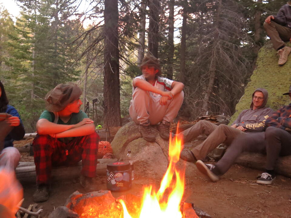 The group was strong and committed to having a good time. They made easy work of some sections of the trail and took breaks in others. Before they knew it camp was within sight and the creek beside them was rushing full of life. They took some time to settle in and get the lay of the land before setting up camp. Before long all the tents were set up and the group was relaxing and getting to know each other. That first evening was a calm one, and the group was able to feel comfortable in the space they would be spending the next four nights at. The evening routine was set; dinner, a fire, and a GRANITE meeting. As the sun tucked behind the horizon and the temperature dropped the group moved closer to the fire and welcomed the stars on their first night out.