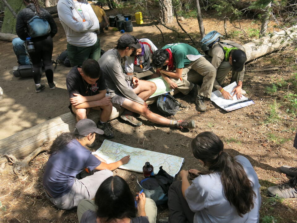 The big day arrived, everyone woke up Tuesday morning knowing that night they would be sleeping out in the woods. Gathering all their belongings and making sure nothing was left behind the group piled back into their vehicles, now equipped with all the gear and food for the next four days and made their way to the McGurk Meadow trail head. Once they arrived at the trail head, cell phones were left behind and adventure smiles were deployed. Everyone got on their packs, educators did one quick last check to make sure everyone was ready and they were off.