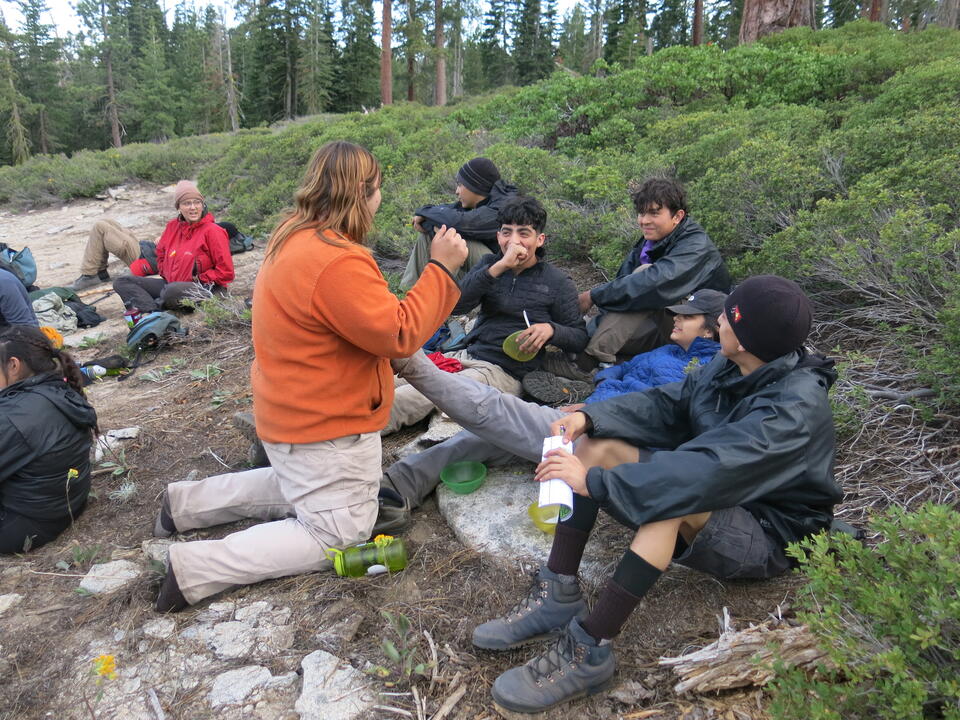 The group entered the park through the south entrance and made their way to the National Environmental Science Center (NESC), NatureBridge’s new campus and a new location the group had never seen. There they unloaded the vehicles and met NESC site staff as well as their educators and backpacking guides. As the group settled into their cabins dinner was prepared by the NatureBridge chefs Trevor and Marcus. After dinner their educator Katie Smith led them through their first evening program over a fire, guiding them through their first GRANITE meeting of the week and including some reading from previous groups by reading some entries from WildLink’s group journal.