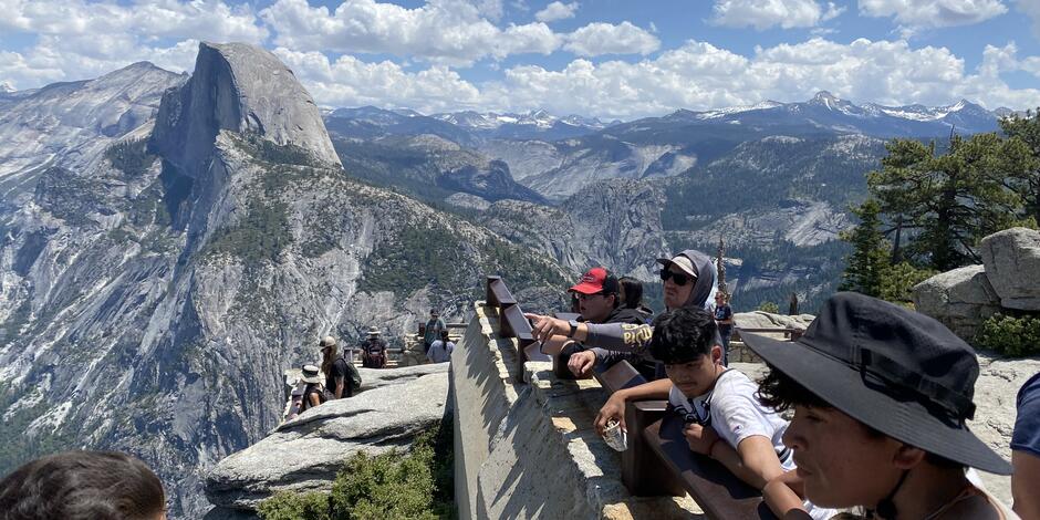Friday came with bright blue skies and lofty white clouds. The group packed up camp and headed towards the trail head, recognizing the trail they had hiked in on and feeling like it had been ages ago. Once at the trail head gear was sorted and everyone was ready to pile into vehicles one last time. But one more stop took the group to Glacier Point where civilization seemed to return. People were everywhere and indoor toilets were available, yet not as appealing as they once were. The Glacier Point store was a welcomed stop where ice cream and beverages tasted better than they ever have. Looking over the valley one last time and realizing it was the end of their trip the group took it all in one last time and shared stories and appreciations. Getting back on the road with aching feet and nourished souls the group made their way back home knowing a piece of Yosemite was with them.