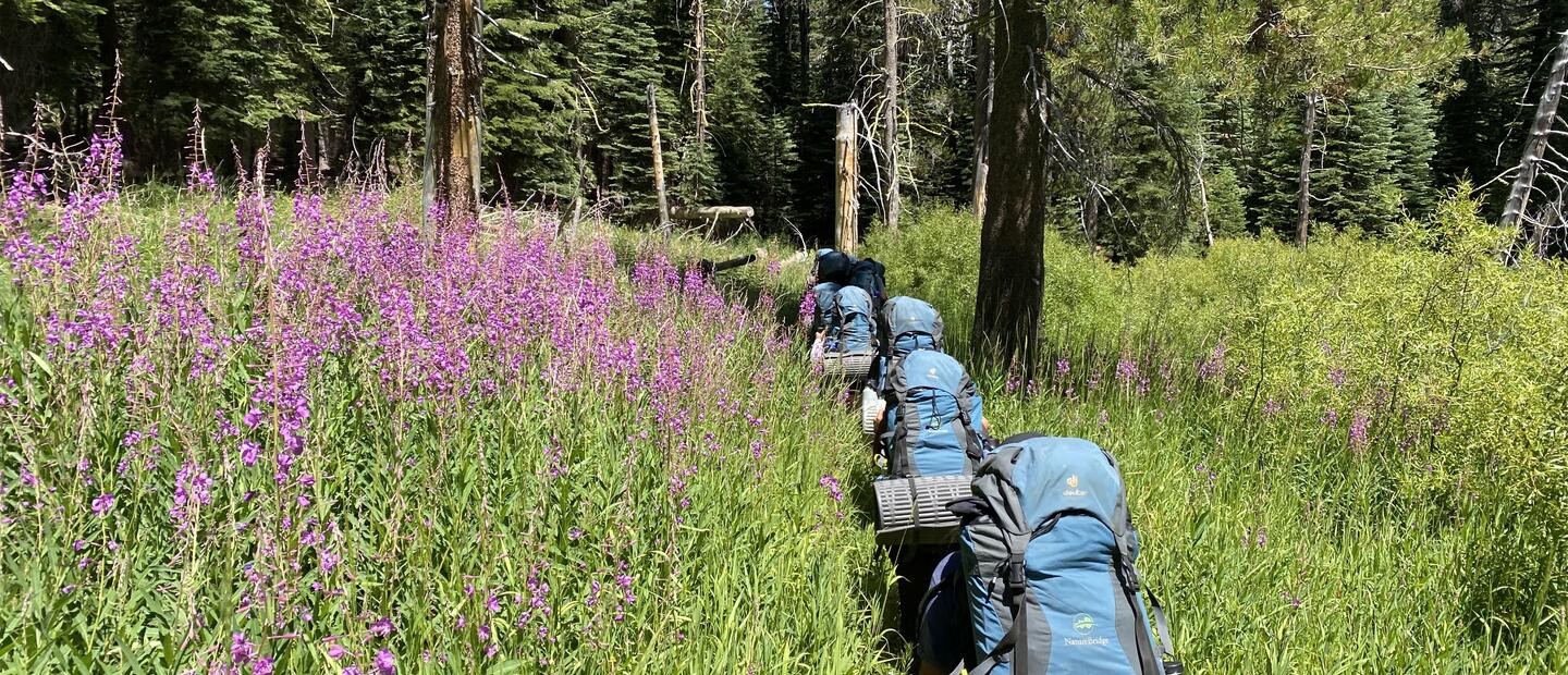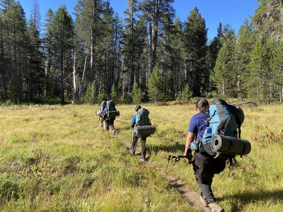 The weather held and Tuesday was another warm sunny day. After arriving at the McGurk Meadow trail head, everyone dawned their very full backpacks and began making their way to where they would camp for the next three nights. Once at camp, lunch and a brief break were taken before getting on with setting up camp. The group was taught how to set up their tents and where everything would be set. Bear cans, water filters, and kitchen equipment were set up. That afternoon the group relaxed in camp, took a dip in the nearby Bridalveil creek, talked and journaled. As time for dinner approached the group was joined by a wilderness ranger who spoke with the group about their role in the park and the journey that led them to their job. After everyone shared a meal, the wilderness ranger said goodbye to the group as everyone began to get ready for bed.