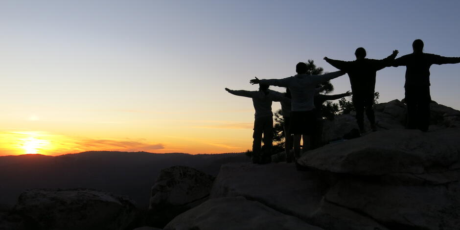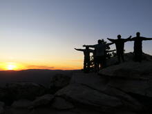 The trail was long and steep in sections, some members had a tough time getting to the edge of the southern rim of Yosemite valley. Along the way a special sighting of a momma bear and her cubs in the distance brought the group back to good spirits by making them realize what a special place this was. When they got to Dewey Point it was all worth it. An orange and pink blanket of light draped over the sierras becoming darker and richer as the sun faded away. Laughs and tears were had, and journals were written in all while taking in the beautiful scenery. The group stayed out until the sun was completely gone, the sky was dark and the stars and moon were bright above. Headlights were turned on and the journey back began. The trail was completely different now that darkness enveloped the group, they stayed close together exchanging stories as they walked. To some a short while after to other quite a bit of time and the group got back to camp. Everyone fell into their bedtime routine, brushing their teeth and filling up water bottles before heading to bed.